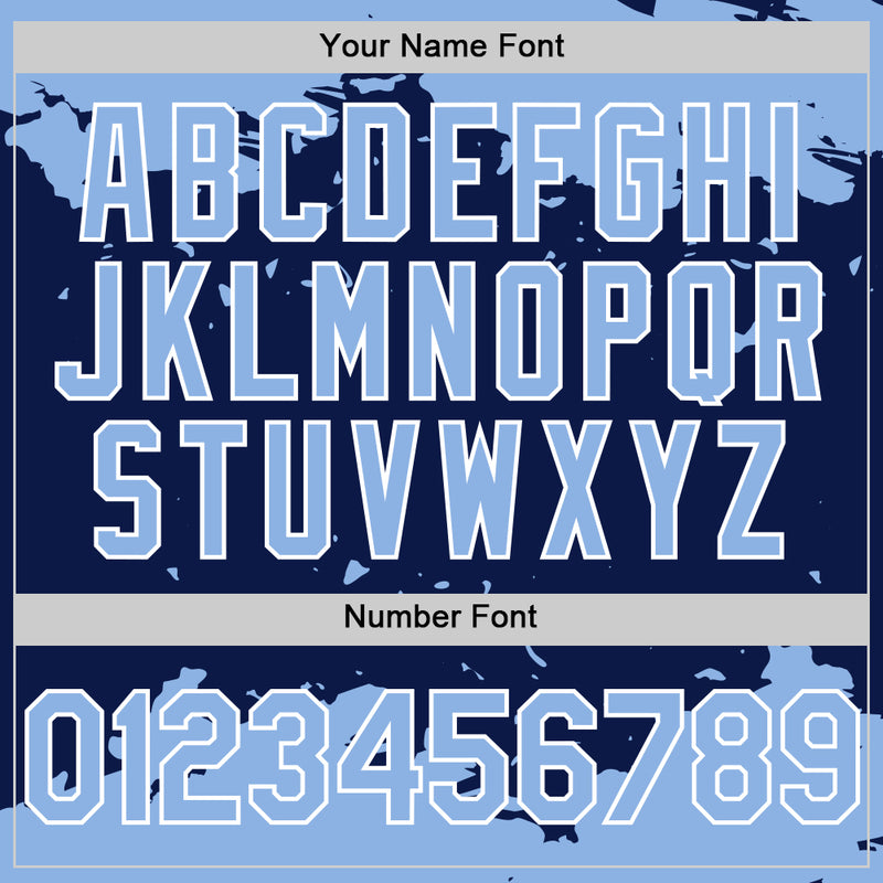 Custom Navy Light Blue-White Splash Art 3D Pattern Design Bomber Full-Snap Varsity Letterman Hoodie Jacket