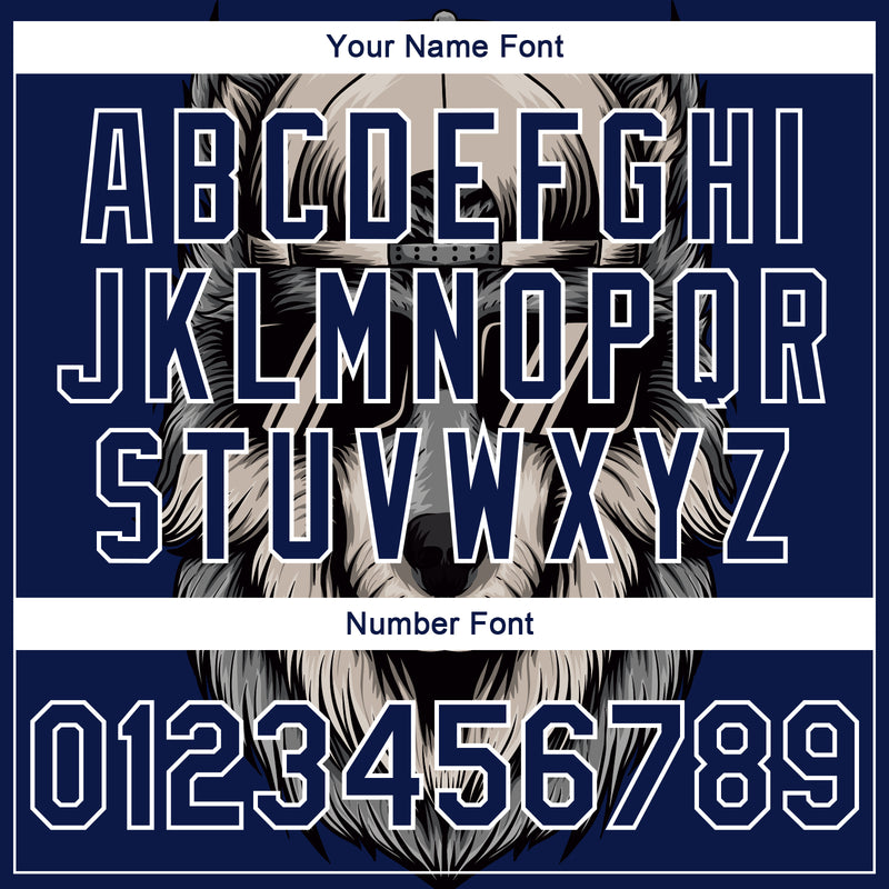 Custom Navy White-Gray Wolf 3D Pattern Design Bomber Full-Snap Varsity Letterman Jacket
