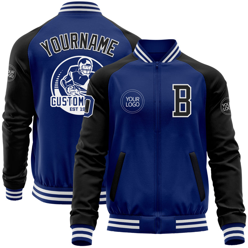 Custom Royal Black-White Bomber Varsity Letterman Two Tone Zipper Jacket