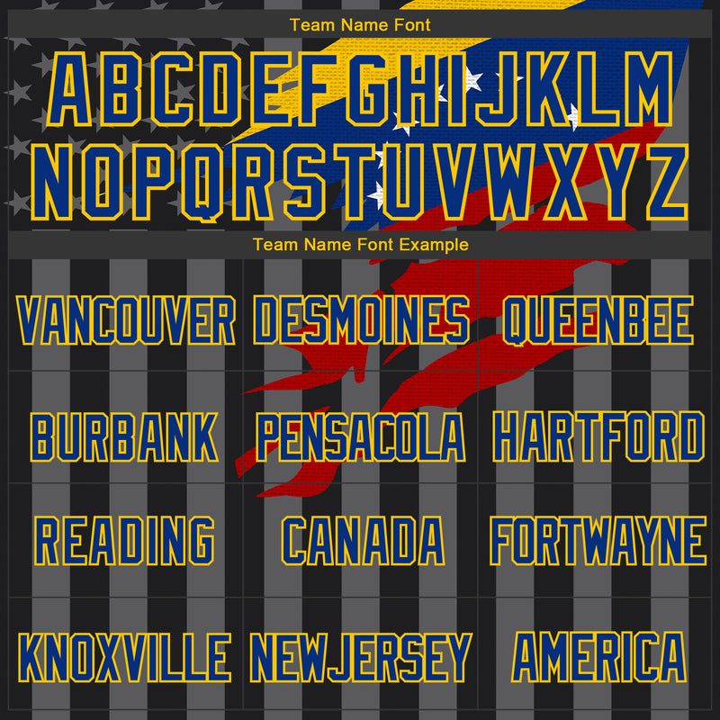 Custom Black Royal Yellow-Gray Venezuela Venezuelan Flag 3D Bomber Full-Snap Varsity Letterman Hoodie Jacket