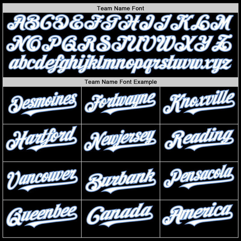 Custom Black White-Light Blue Bomber Full-Snap Varsity Letterman Hoodie Jacket