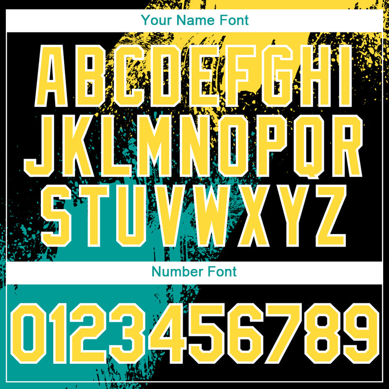 Custom Black Yellow Teal-White Abstract Brush Stroke 3D Pattern Design Bomber Full-Snap Varsity Letterman Hoodie Jacket
