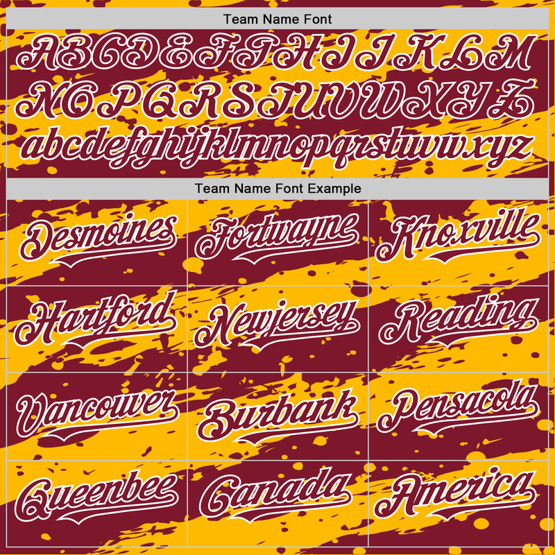 Custom Gold Crimson-White Splash 3D Pattern Design Bomber Full-Snap Varsity Letterman Hoodie Jacket