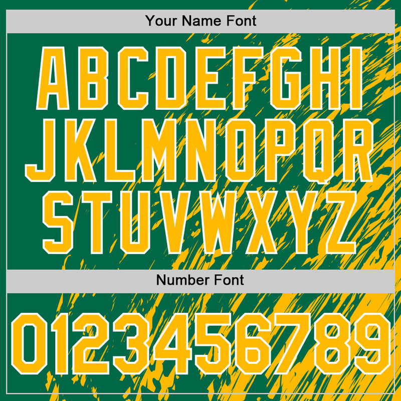 Custom Kelly Green Gold-White 3D Pattern Design Bomber Full-Snap Varsity Letterman Hoodie Jacket
