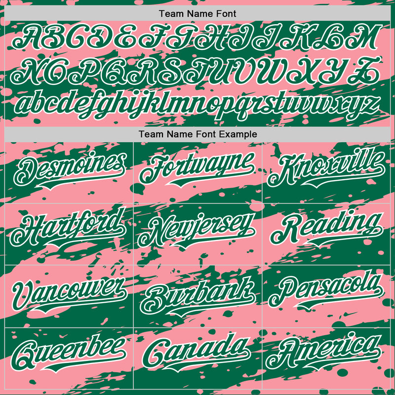 Custom Medium Pink Kelly Green-White Splash 3D Pattern Design Bomber Full-Snap Varsity Letterman Hoodie Jacket