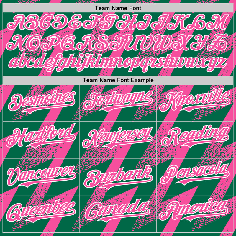 Custom Kelly Green Pink-White Zigzag Shape 3D Pattern Design Bomber Full-Snap Varsity Letterman Hoodie Jacket
