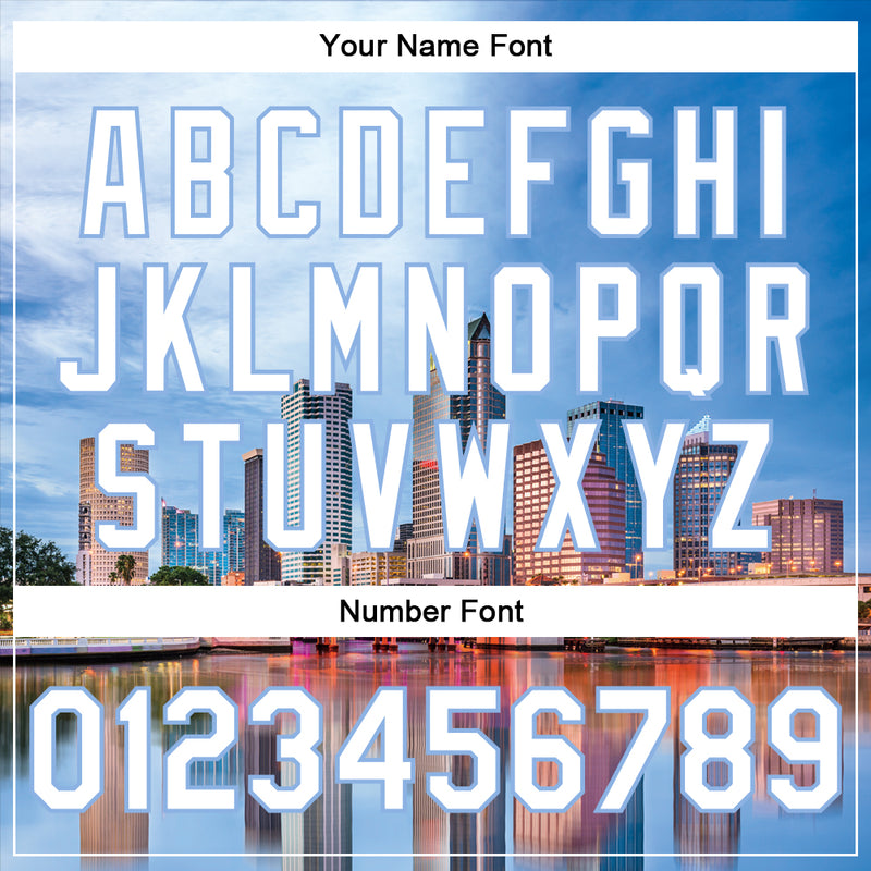 Custom Light Blue White Tampa Florida City Edition 3D Bomber Full-Snap Varsity Letterman Jacket