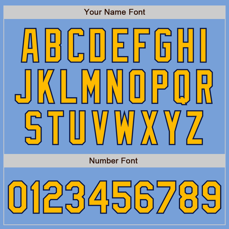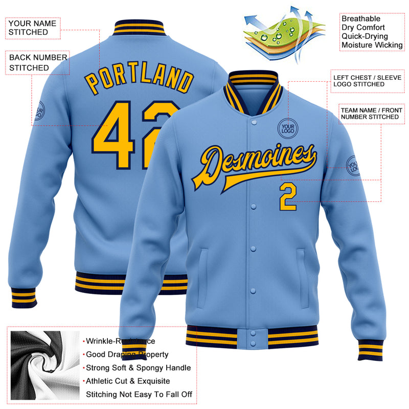 Custom Light Blue Gold-Navy Bomber Full-Snap Varsity Letterman Jacket