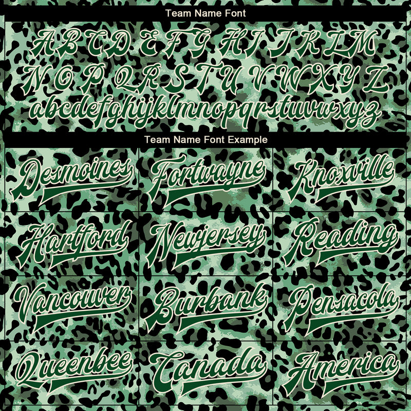 Custom Green City Cream Leopard Print 3D Pattern Design Bomber Full-Snap Varsity Letterman Jacket