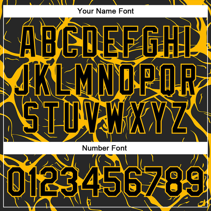 Custom Black Gold Abstract Network 3D Pattern Design Bomber Full-Snap Varsity Letterman Jacket