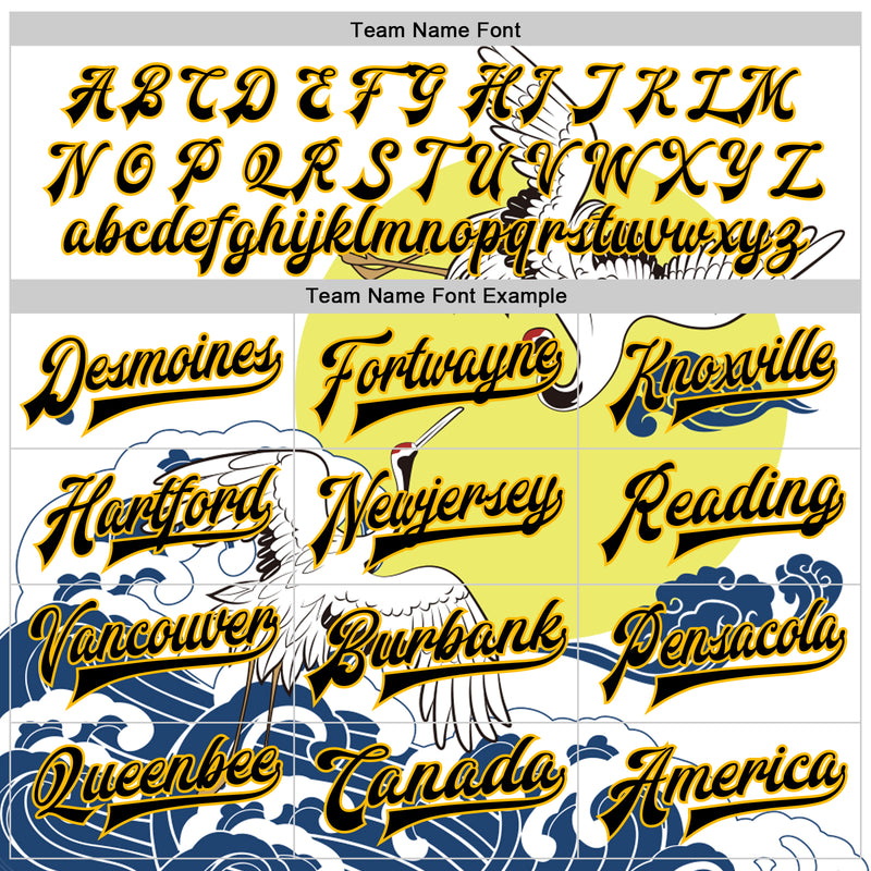 Custom White Black-Gold Heron And Wave 3D Pattern Design Bomber Full-Snap Varsity Letterman Jacket