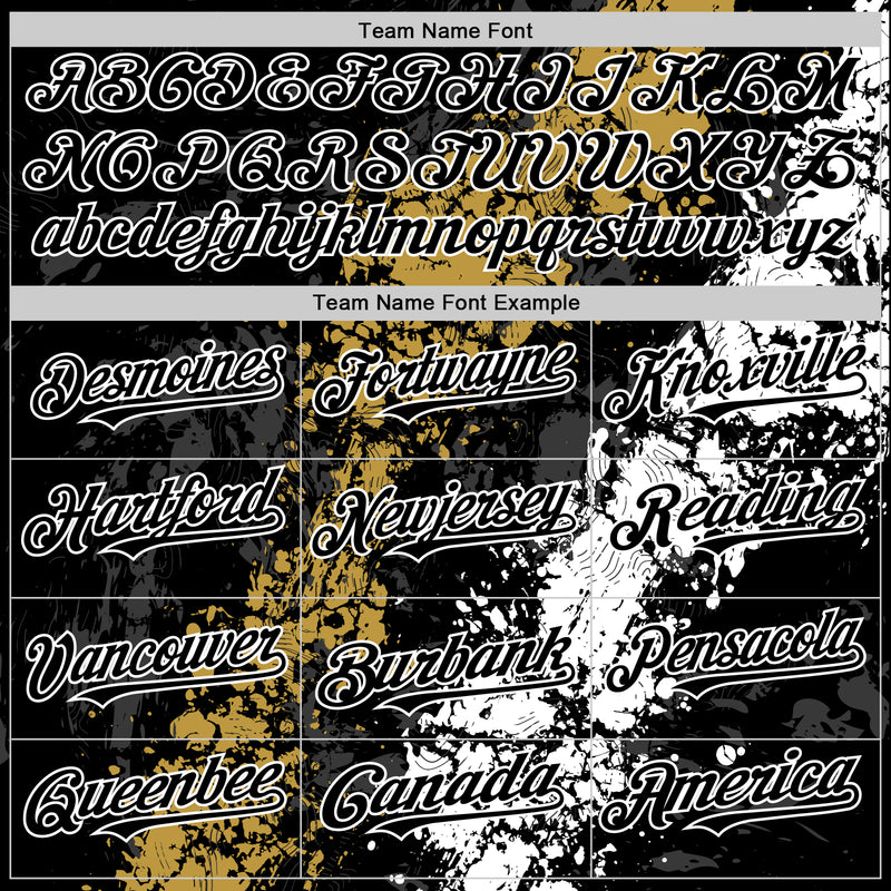 Custom Black Old Gold-White Splash Art 3D Pattern Design Bomber Full-Snap Varsity Letterman Hoodie Jacket