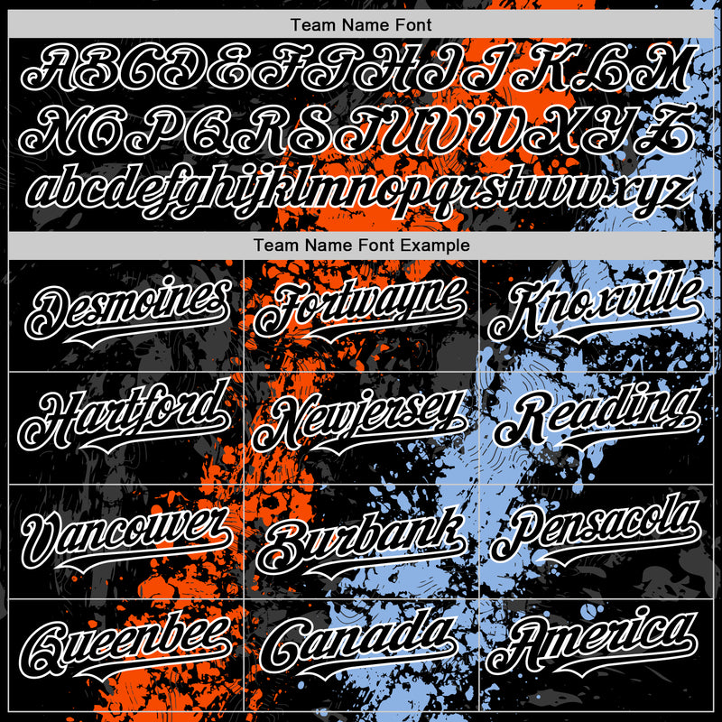 Custom Black Orange Light Blue-White Splash Art 3D Pattern Design Bomber Full-Snap Varsity Letterman Hoodie Jacket