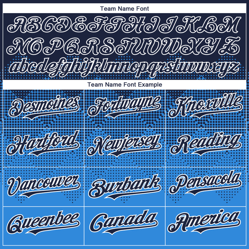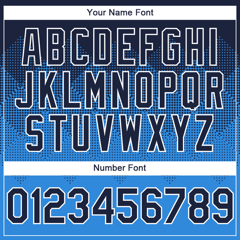 Custom Navy Powder Blue-White Gradient Square Shape 3D Pattern Design Bomber Full-Snap Varsity Letterman Hoodie Jacket