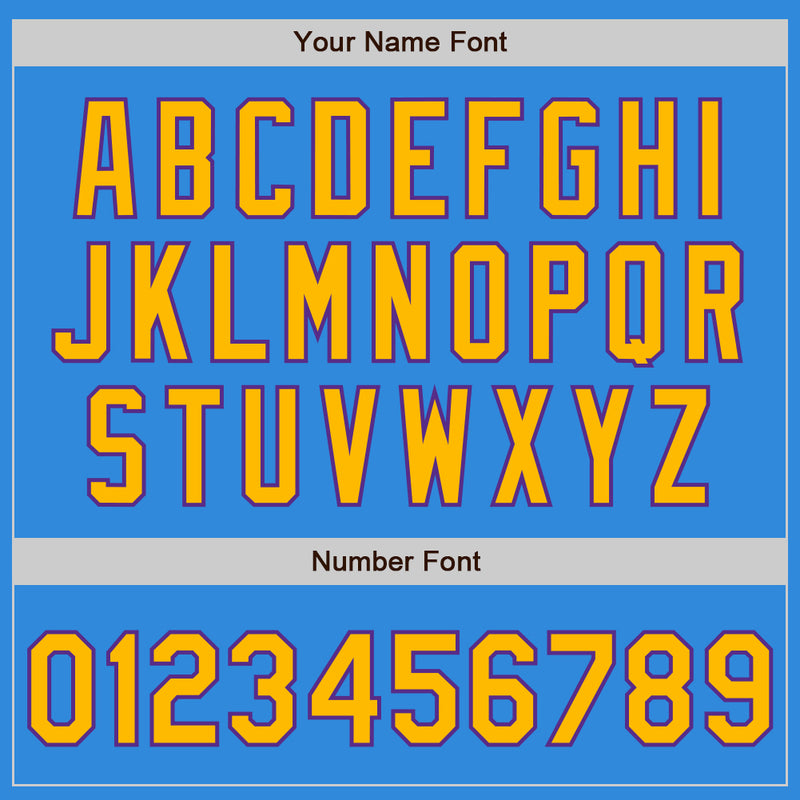 Custom Powder Blue Gold-Purple Bomber Full-Snap Varsity Letterman Two Tone Jacket