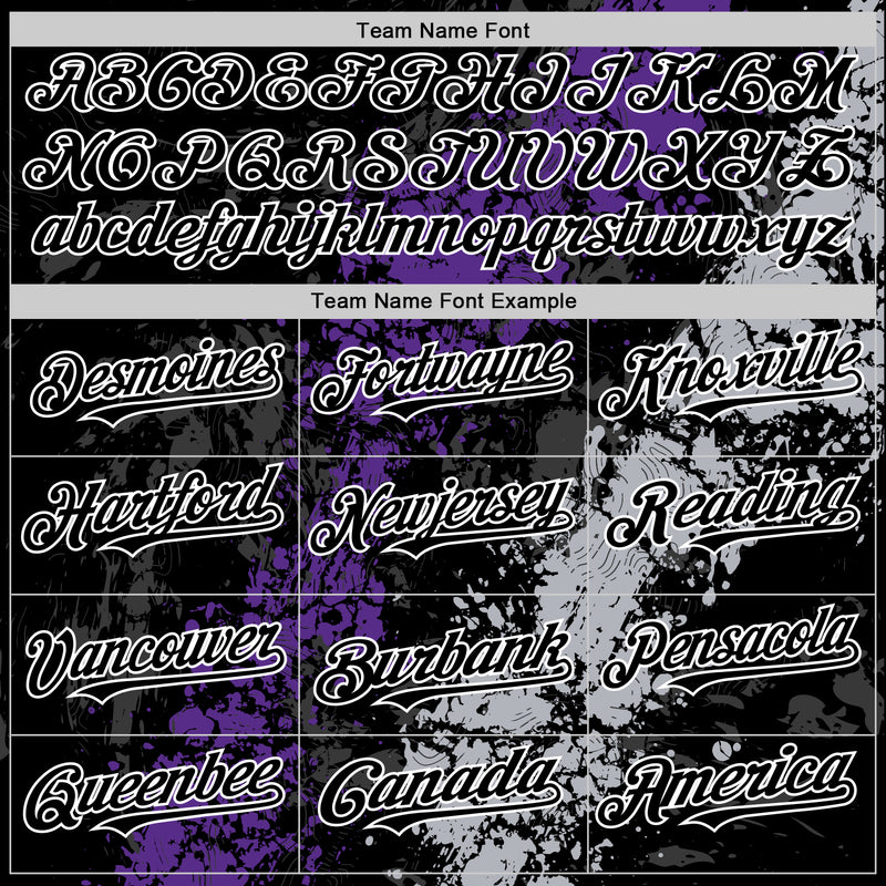 Custom Black Purple Gray-White Splash Art 3D Pattern Design Bomber Full-Snap Varsity Letterman Hoodie Jacket