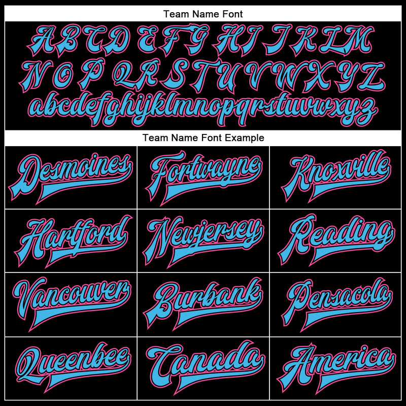 Custom Black Pink-Sky Blue Bomber Full-Snap Varsity Faux Leather Letterman Jacket