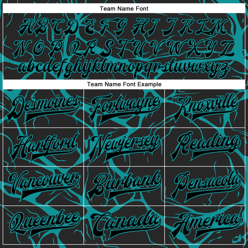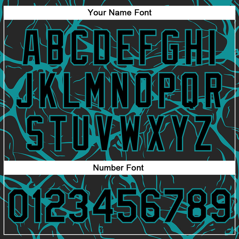 Custom Black Teal Abstract Network 3D Pattern Design Bomber Full-Snap Varsity Letterman Jacket