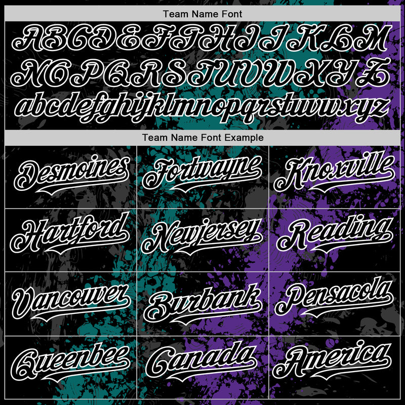 Custom Black Teal Purple-White Splash Art 3D Pattern Design Bomber Full-Snap Varsity Letterman Hoodie Jacket