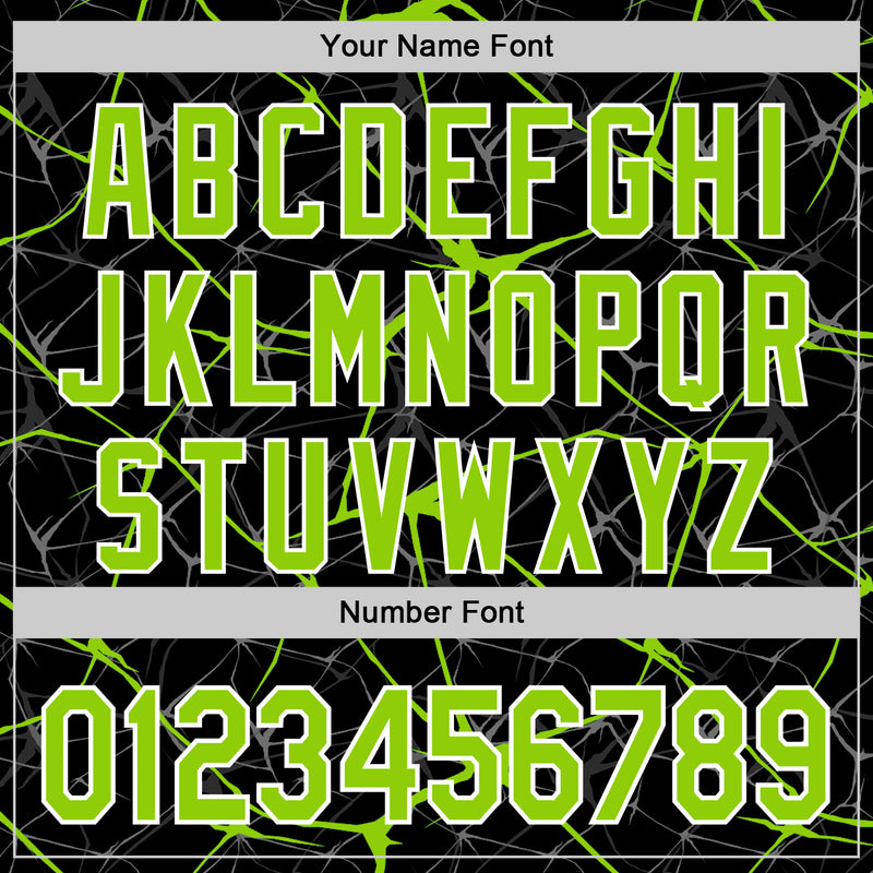 Custom Black Neon Green-White Abstract Network 3D Pattern Design Bomber Full-Snap Varsity Letterman Hoodie Jacket