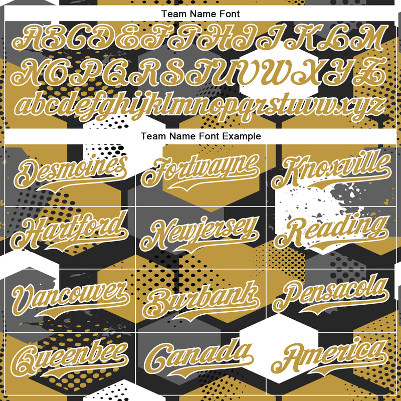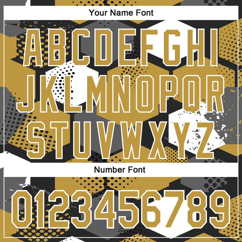Custom Black Old Gold-White Geometric Shape Bomber Full-Snap Varsity Letterman Hoodie Jacket