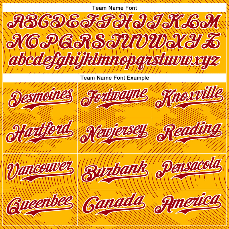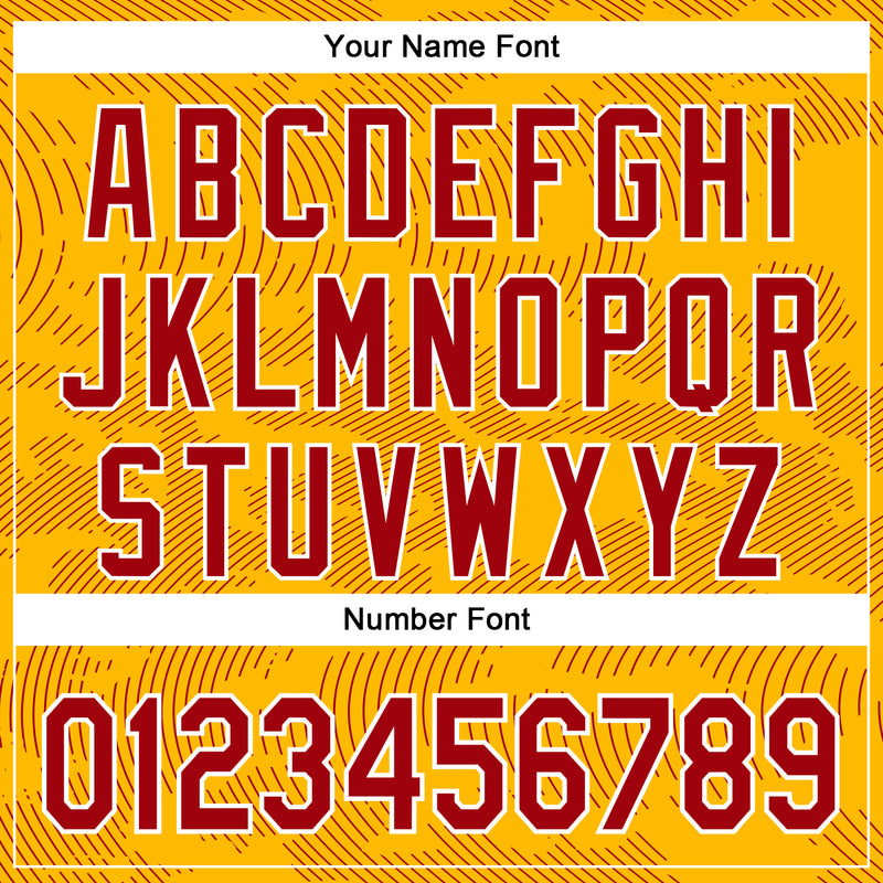 Custom Gold Red-White Curve Lines Bomber Full-Snap Varsity Letterman Hoodie Jacket