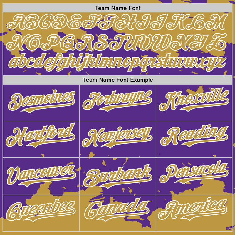 Custom Purple Old Gold-White Splash Art 3D Pattern Design Bomber Full-Snap Varsity Letterman Hoodie Jacket