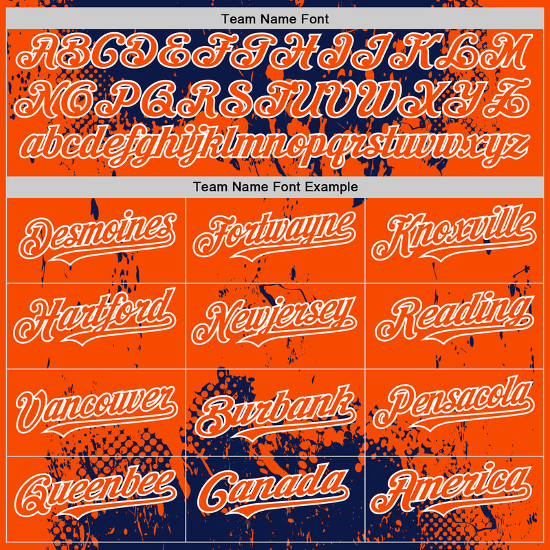 Custom Navy Orange-White Splash Art 3D Pattern Design Bomber Full-Snap Varsity Letterman Hoodie Jacket