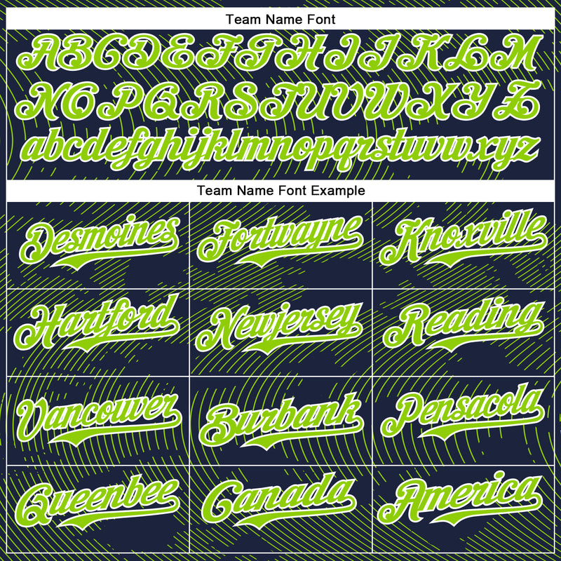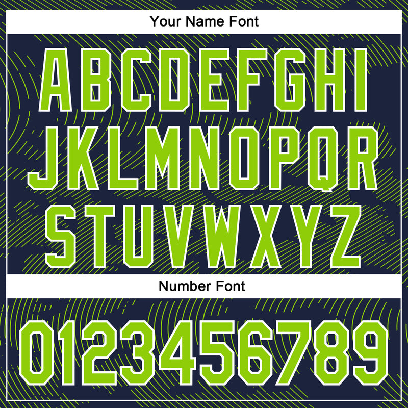 Custom Navy Neon Green-White Curve Lines Bomber Full-Snap Varsity Letterman Hoodie Jacket
