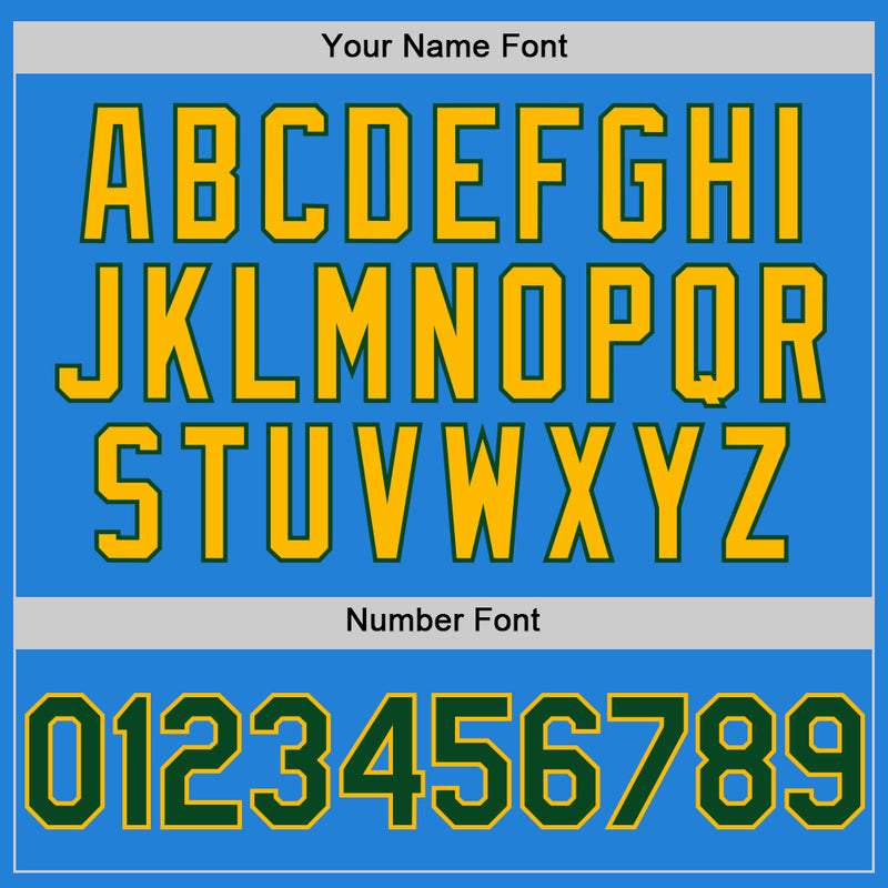 Custom Powder Blue Green-Gold Bomber Full-Snap Varsity Letterman Hoodie Jacket