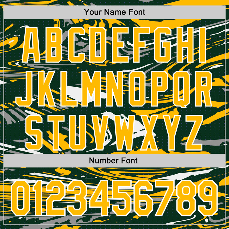 Custom Figure Gold Green-White Fluid Pattern Bomber Full-Snap Varsity Letterman Hoodie Jacket