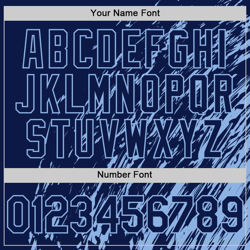 Custom Navy Navy-Light Blue 3D Pattern Design Bomber Full-Snap Varsity Letterman Hoodie Jacket
