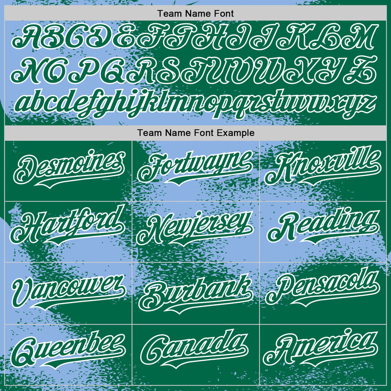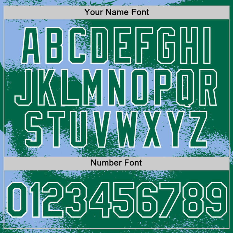 Custom Kelly Green Light Blue-White Abstract Color Blocks Fragment Pattern Bomber Full-Snap Varsity Letterman Hoodie Jacket