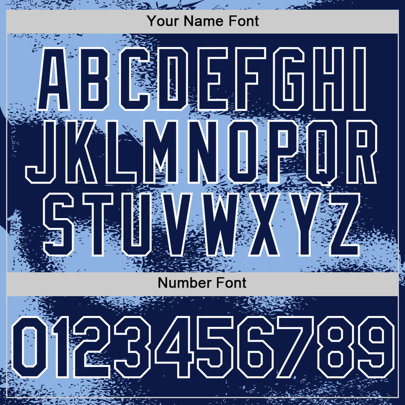 Custom Navy Light Blue-White Abstract Color Blocks Fragment Pattern Bomber Full-Snap Varsity Letterman Hoodie Jacket