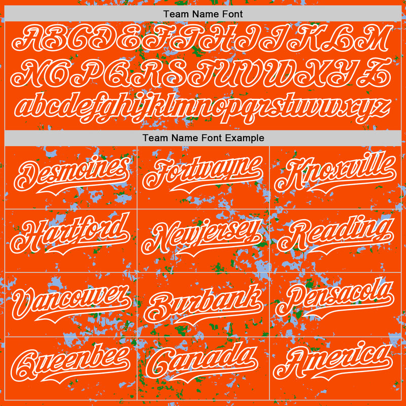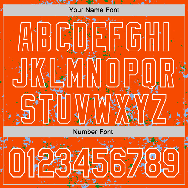 Custom Orange Light Blue Grass Green-White Fragment Pattern Bomber Full-Snap Varsity Letterman Hoodie Jacket
