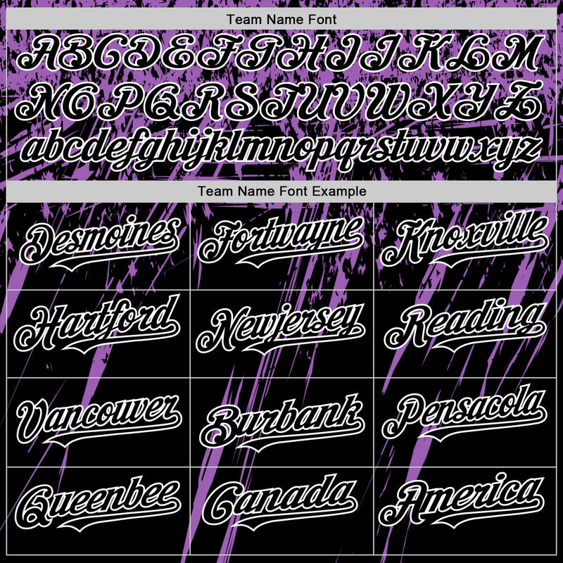 Custom Black Medium Purple-White Splash Bomber Full-Snap Varsity Letterman Hoodie Jacket