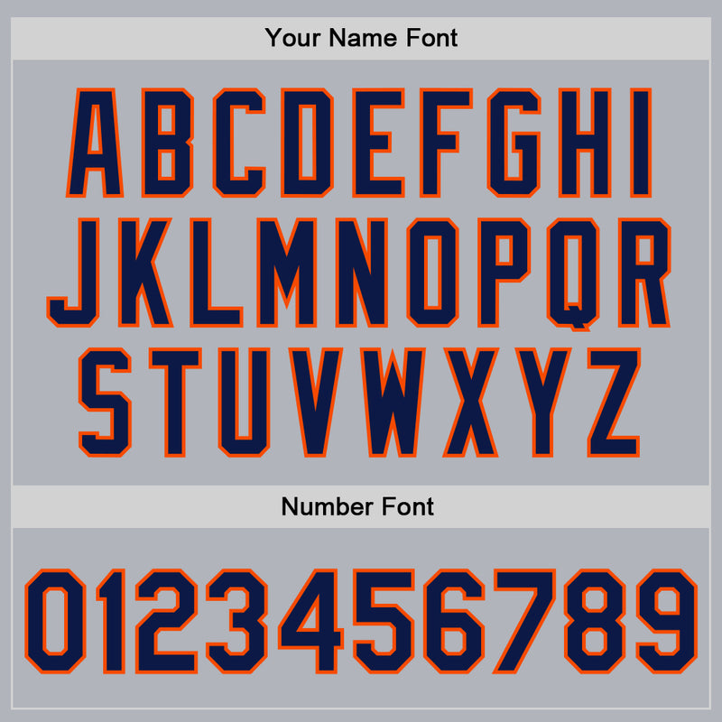 Custom Gray Navy-Orange Bomber Full-Snap Varsity Faux Leather Letterman Jacket