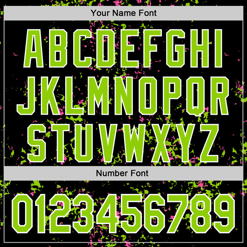 Custom Black Neon Green Pink-White Fragment Pattern Bomber Full-Snap Varsity Letterman Hoodie Jacket