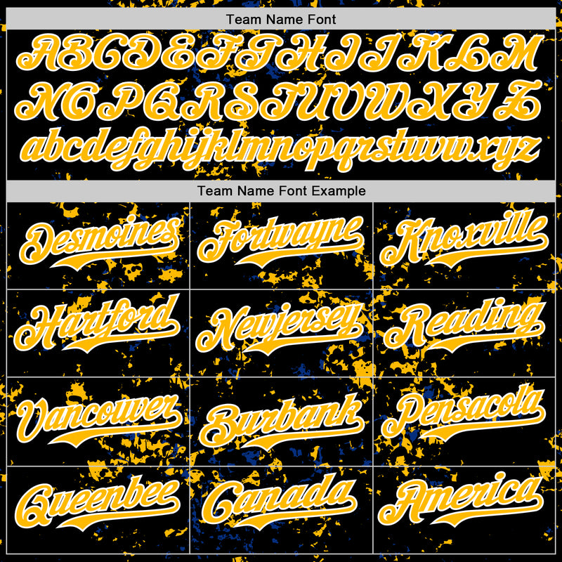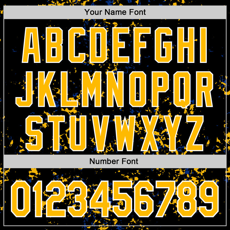 Custom Black Gold Royal-White Fragment Pattern Bomber Full-Snap Varsity Letterman Hoodie Jacket