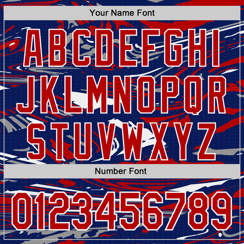 Custom Figure Red Royal-White Fluid Pattern Bomber Full-Snap Varsity Letterman Hoodie Jacket