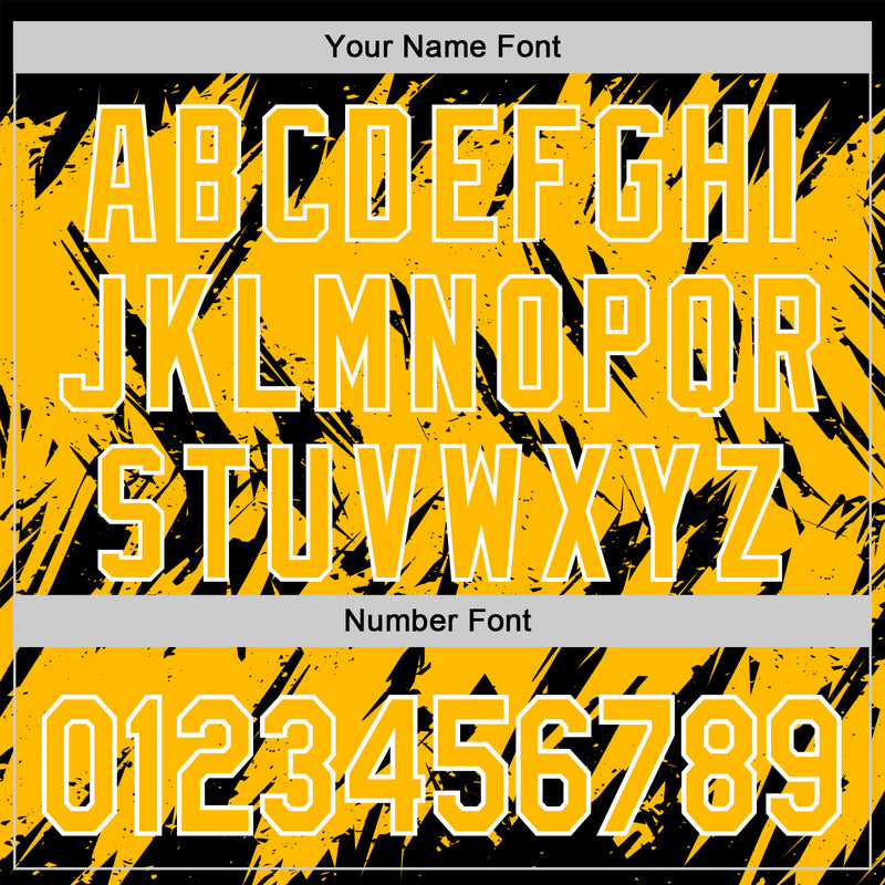 Custom Black Gold-White Abstract Sharp Shape Fragment Pattern Bomber Full-Snap Varsity Letterman Hoodie Jacket