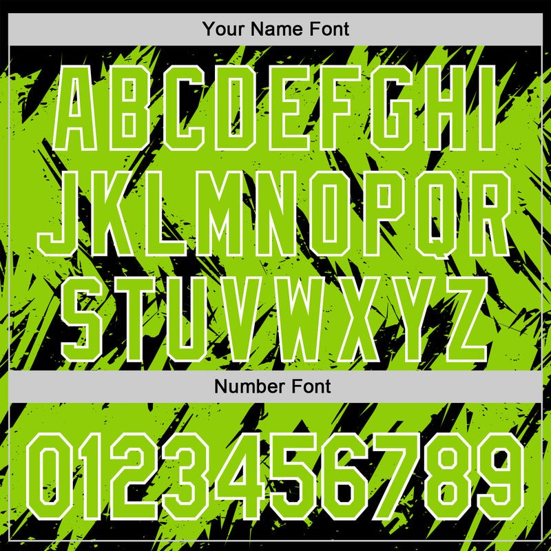 Custom Black Neon Green-White Abstract Sharp Shape Fragment Pattern Bomber Full-Snap Varsity Letterman Hoodie Jacket