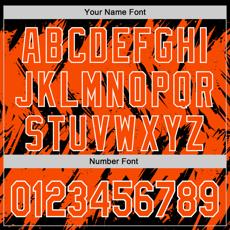 Custom Black Orange-White Abstract Sharp Shape Fragment Pattern Bomber Full-Snap Varsity Letterman Hoodie Jacket