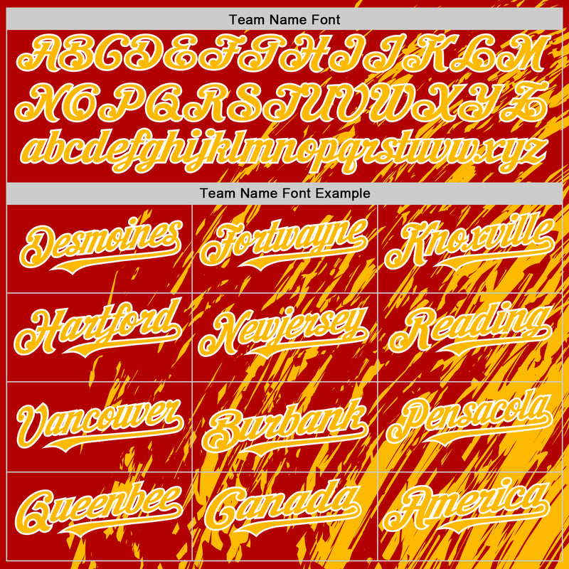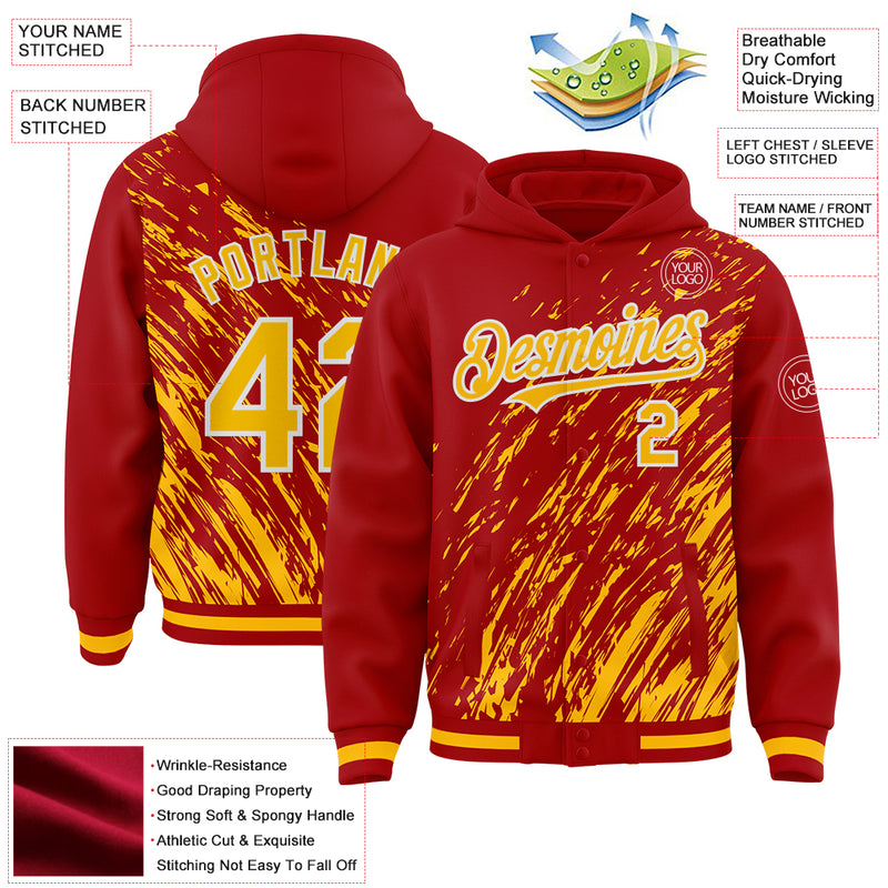 Custom Red Gold-White 3D Pattern Design Bomber Full-Snap Varsity Letterman Hoodie Jacket
