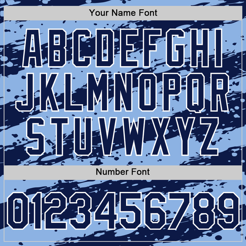 Custom Light Blue Navy-White Splash 3D Pattern Design Bomber Full-Snap Varsity Letterman Hoodie Jacket