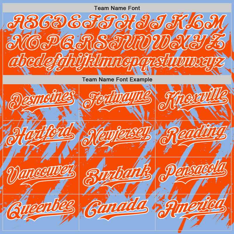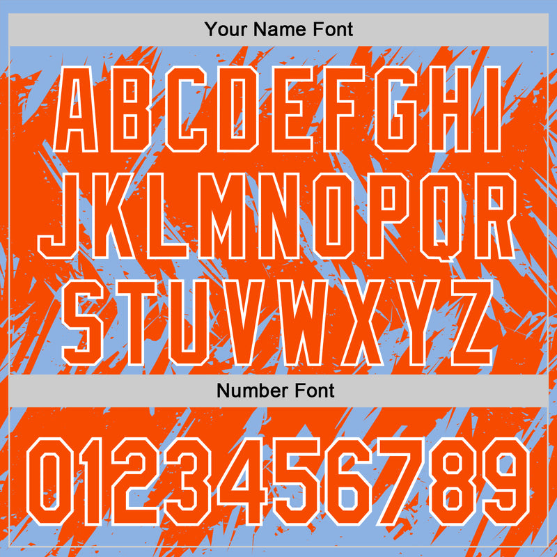 Custom Light Blue Orange-White Abstract Sharp Shape Fragment Pattern Bomber Full-Snap Varsity Letterman Hoodie Jacket