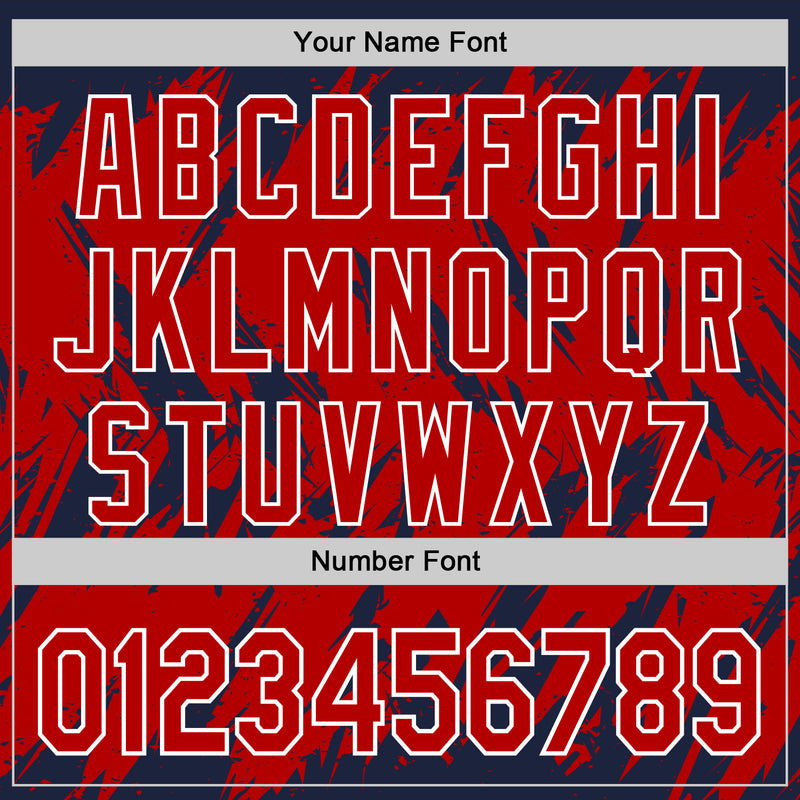 Custom Navy Red-White Abstract Sharp Shape Fragment Pattern Bomber Full-Snap Varsity Letterman Hoodie Jacket