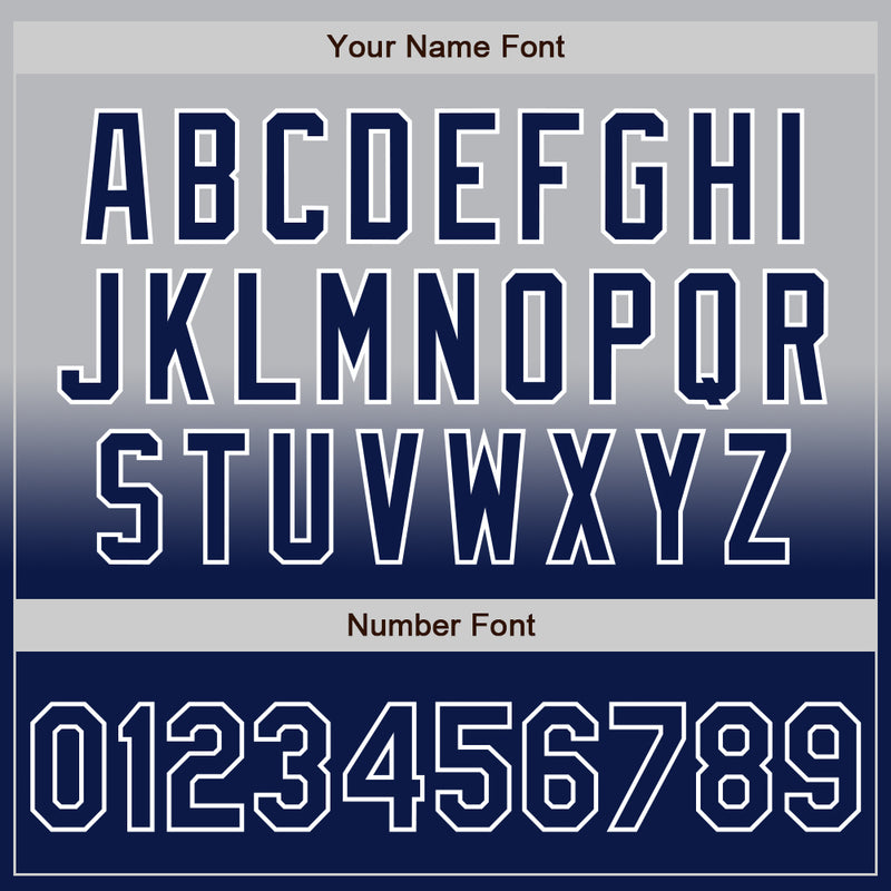 Custom Gray Navy-White Bomber Full-Snap Varsity Letterman Fade Fashion Jacket