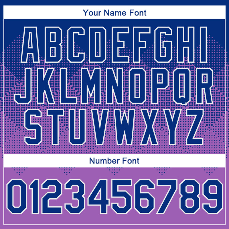 Custom Royal Medium Purple-White Gradient Square Shape 3D Pattern Design Bomber Full-Snap Varsity Letterman Hoodie Jacket