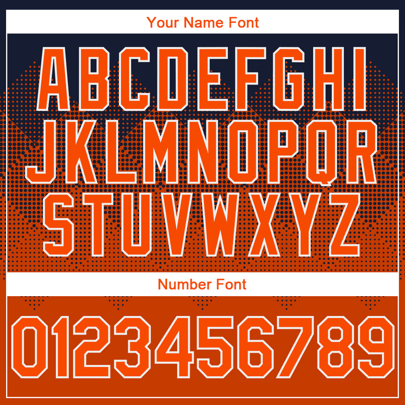 Custom Navy Orange-White Gradient Square Shape 3D Pattern Design Bomber Full-Snap Varsity Letterman Hoodie Jacket